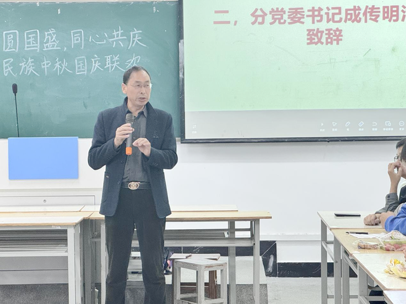 在致辞中,成传明饱含深情讲到,我们的祖国正日益强大,在世界的舞台上绽放着耀眼光芒,从科技创新的重大突破到国际事务中的担当作为,每一个成就都彰显着国家的雄厚实力与无限潜力。我们作为新时代的青年,身处这样伟大的时代,肩负着民族复兴的重大使命。同时,他叮嘱我院学子,要时刻将祖国与民族放在心中,以赤诚之心系祖国,把个人的成长与国家的命运紧密相连,在祖国的繁荣发展中找准自己的定位,贡献自己的力量;以深厚之情念民族,携手并肩,团结如一家,像石榴籽一样紧紧抱在一起,共同绘就民族团结的绚丽同心圆。学校是学生成长的摇篮,是新时代青年梦想起航的地方,愿每一位师生都应爱校如家,在强大的祖国庇护下,在温馨的校园环境中,努力学习,积极进取,共同创造更加美好的未来。