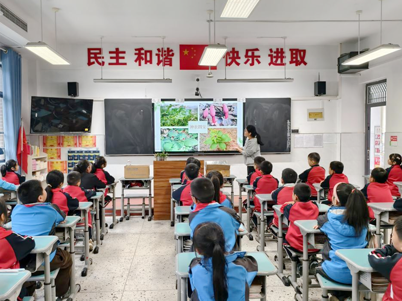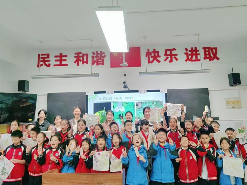 10月11日,汉江师范学院化学与环境工程学院师生走进茅箭区天津路第二小学,开展了一场以“秦巴药库”为主题的自然科普活动。在甘露老师的指导下,四名生物科学专业学生设计了“药用植物科普”“叶脉书签制作”和“植物拓印体验”三大环节,为小学生们带来了一堂生动有趣的“自然魔法课”。