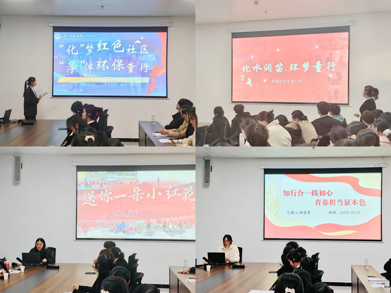 会议首项议程为暑期社会实践优秀团队成果展示。高中因同学代表“破茧”志愿服务队率先汇报,随后华雯萱同学代表化环学院赴郧西“化韵环生,‘碳’索绿能”支教小分队、李欣同学代表秦巴百草学堂小分队、李润芝同学代表“九色鹿”科普小分队、李晋羽同学代表化水润苗·环梦童行志愿服务队依次登台,通过PPT系统呈现各团队的实践内容、亮点成果与经验感悟,展现了化环学子在不同实践领域的担当作为。