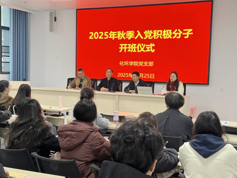 为进一步壮大党员队伍,持续增强党组织的凝聚力、战斗力和创造力,10月25日上午,化学与环境工程学院2025年秋季入党积极分子培训班开班仪式在明理楼C203教室举行。化学与环境工程学院分党委书记成传明、分党委副书记曾晓东、学生党支部书记张锦佳、学生党支部组织委员周视玉出席了本次开班仪式。化环学院2025年下半年共有58名入党积极分子参加此次学习。开班仪式由曾晓东主持。